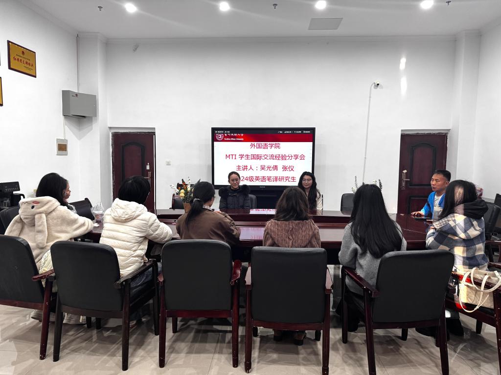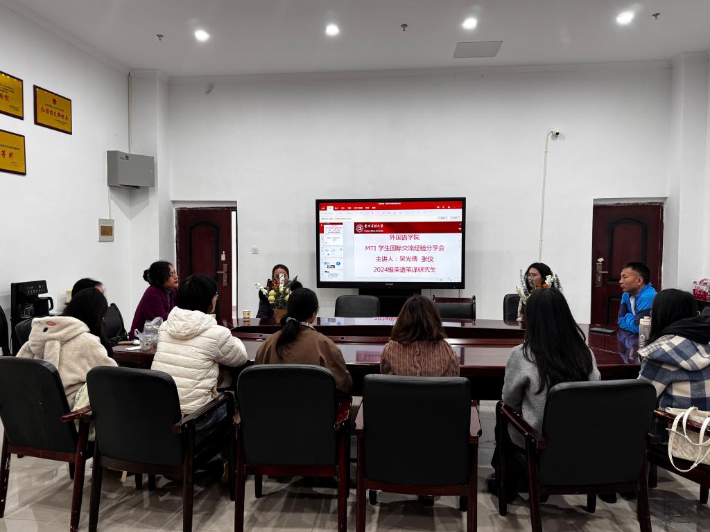 2026年3月12日上午,广发网页版于北校区6-524会议室举办翻译硕士(MTI)国际交流经验分享会。本次分享会由2024英语笔译研究生、刚刚完成马来西亚拉曼大学交流学习的吴光倩、张仪2位同学主讲。广发网页版正处级组织员兼党委副书记杨泰黔出席分享会。2023级、2024级、2025级英语笔译硕士研究生参加。