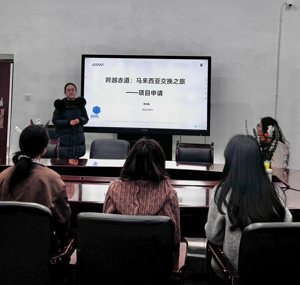 经学校选拔和推荐,广发网页版2024级英语笔译研究生吴光倩、张仪于2025年10月赴马来西亚拉曼大学进行交换学习,2026年1月圆满完成学习回国。在此次分享会上,吴光倩、张仪围绕“项目申请”“拉曼大学简介”“留学生活”“学习收获与心得”等方面展开分享。